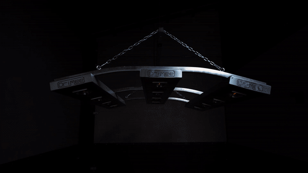 Always hang at 7ft 6inch and use the dimmer to compensate for different height horses. If your average horse is 18 hand then please hang at 8ft.