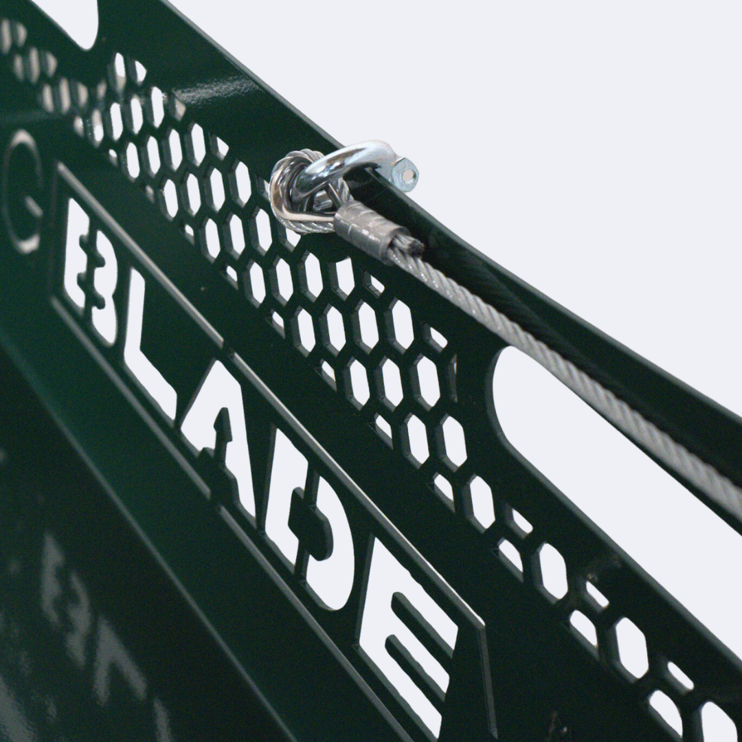 Attach the Dragblade to your quad, truck, or other tow vehicle using the heavy-duty wire rope and heat-treated tow bar ring.
